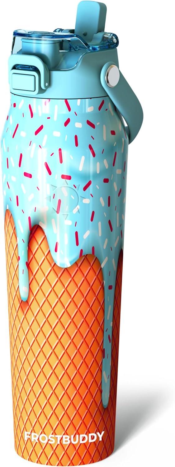 imageFrost Buddy 32oz Insulated Water Bottle with Straw ampamp Chug Lid  LeakProof Stainless Steel  24Hours Cold  SweatProof Cup Holder Friendly  Ideal for Gym Travel Sports ampamp Everyday HydrationBlue Ice Cream