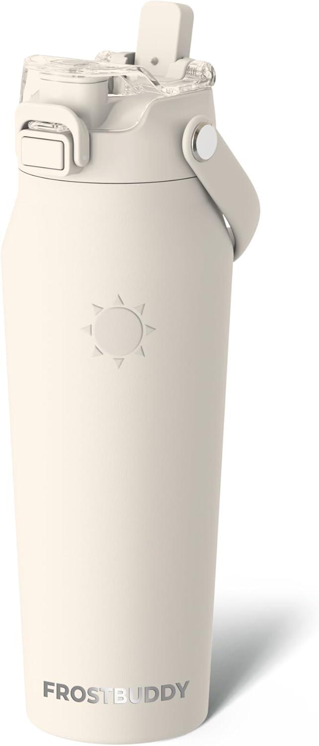 Frost Buddy 32oz Insulated Water Bottle with Straw & Chug Lid | Leak-Proof Stainless Steel | 24-Hours Cold | Sweat-Proof, Cup Holder Friendly | Ideal for Gym, Travel, Sports & Everyday Hydration(Cream)