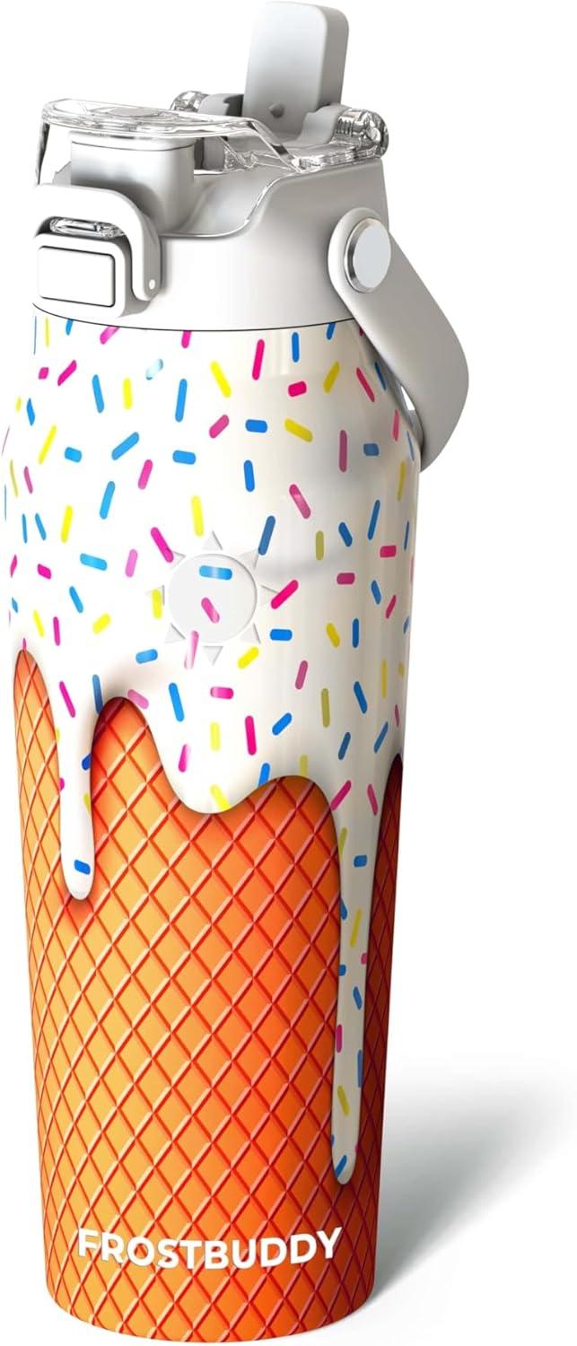 The Frost Buddy Bottle Buddy, available in 16oz, 24oz, and 32oz sizes, is the ultimate insulated stainless steel water bottle built for everyday hydration. Featuring double-wall vacuum insulation, it keeps drinks ice cold for 24+ hours or hot for up to 12 hours, making it the perfect gym water bottle, travel bottle, office bottle, or sports bottle. Designed for convenience, the dual-function lid lets you sip through the straw or chug from the spout, while the leak-proof, locking top prevents spills — toss it in your gym bag, backpack, or car without worry. Unlike bulky bottles, Bottle Buddy is cup holder friendly and features a built-in carry handle for on-the-go use. Made from premium BPA-free stainless steel, it’s sweat-proof, rust-resistant, odor-free, and reusable, offering a durable and eco-friendly alternative to plastic bottles. Choose the size that fits your lifestyle — 16oz for compact and lightweight use, 24oz for daily hydration, or 32oz for maximum thirst-quenching power. Stay refreshed anywhere with Frost Buddy — the water bottle built for gym, travel, sports, and everyday life.