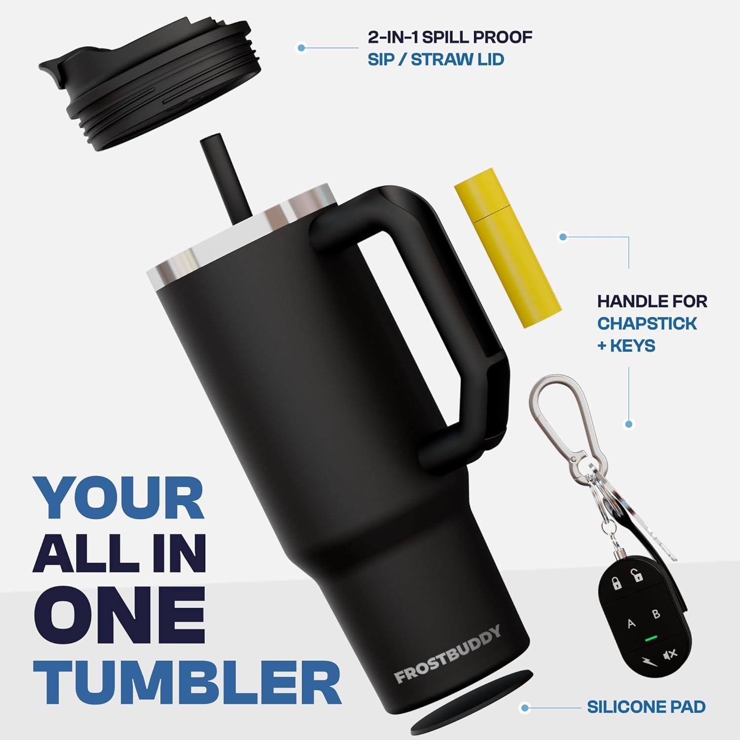 imageFrost Buddy Thicc Buddy  40 oz Stainless Steel Vacuum Insulated Tumbler with Lid and Straw for Water  Travel Mug Cupholder Friendly  Gifts for Women Men Him Her Emerald EleganceBlack