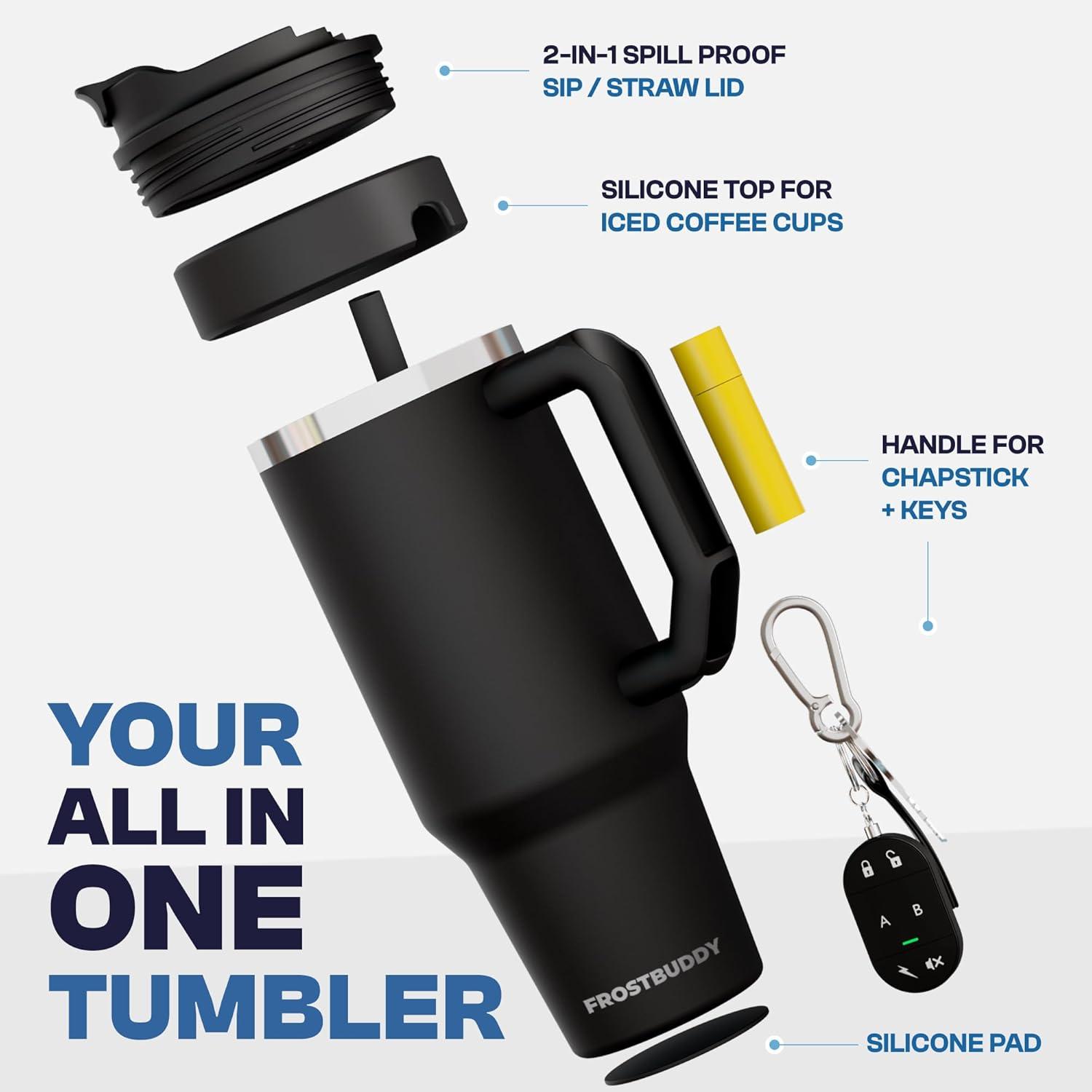 imageFrost Buddy Thicc Buddy  40 oz Stainless Steel Vacuum Insulated Tumbler with Lid and Straw for Water  Travel Mug Cupholder Friendly  Gifts for Women Men Him Her Emerald EleganceBlack