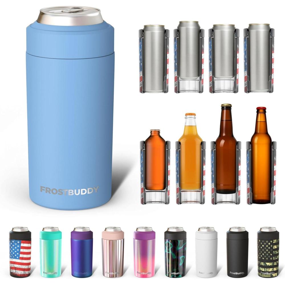 Frost Buddy Universal Can Cooler - Fits All - For Regular 12 & 16 oz or Slim-Size Bottles - Insulated Double-Walled Stainless Steel (Copper Kiss)(Baby Blue)