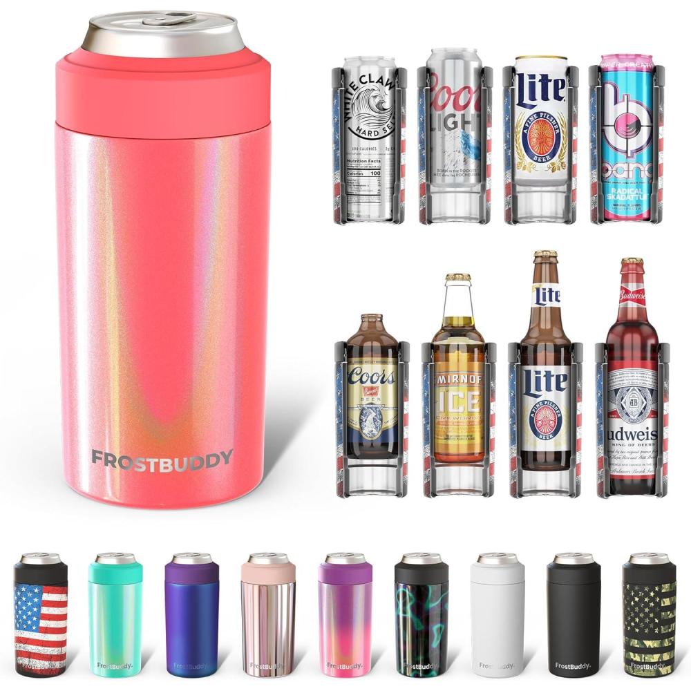 Frost Buddy Universal Can Cooler - Fits All - For Regular 12 & 16 oz or Slim-Size Bottles - Insulated Double-Walled Stainless Steel (Copper Kiss)(Coral Crush)