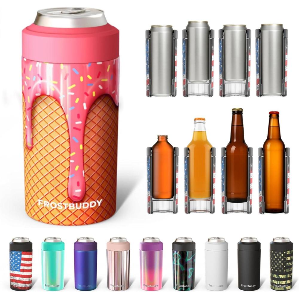 Frost Buddy Universal Can Cooler - Fits All - For Regular 12 & 16 oz or Slim-Size Bottles - Insulated Double-Walled Stainless Steel (Copper Kiss)(Ice Cream)
