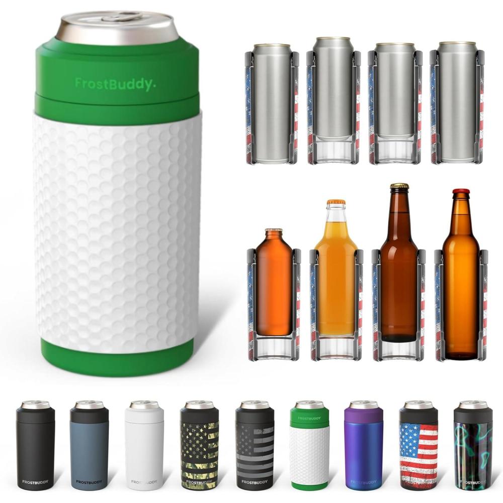 Frost Buddy Universal Can Cooler - Fits all - Stainless Steel Can Cooler for 12 oz & 16 oz Regular or Slim Cans & Bottles - Stainless Steel (Merry Marbleous)(Golf)