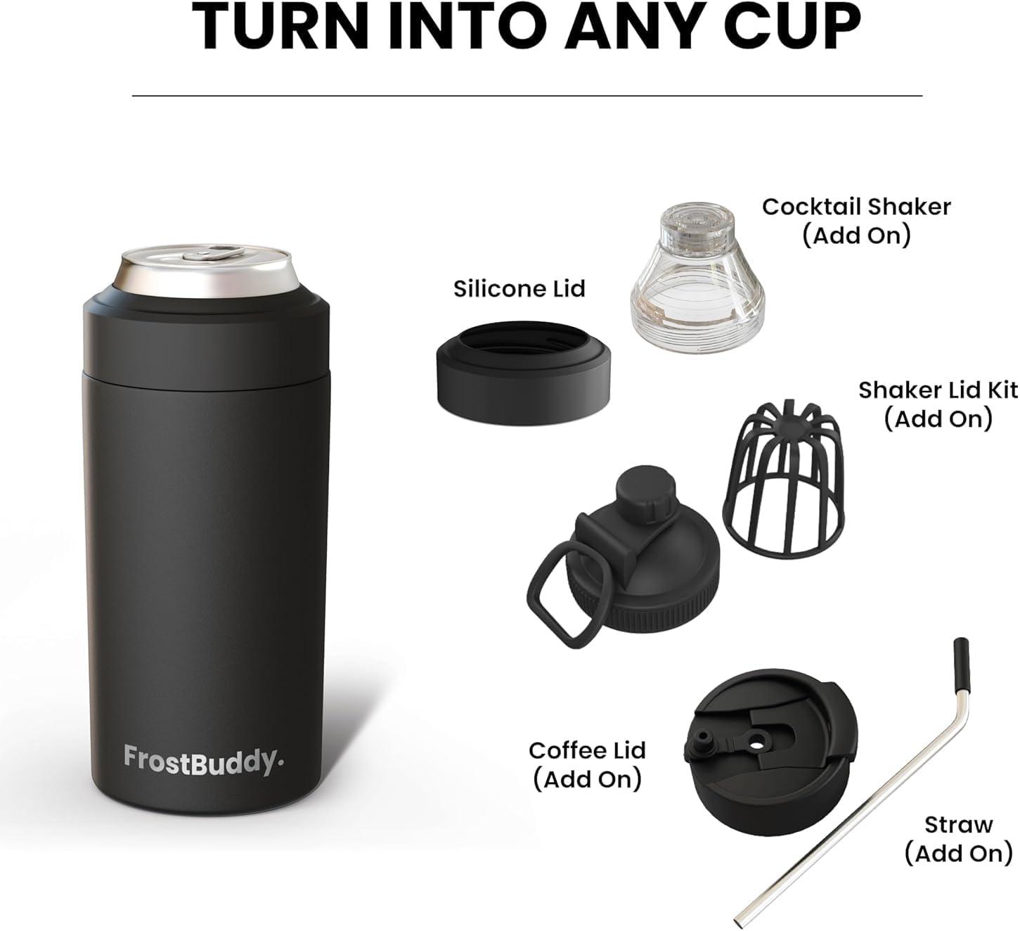 imageFrost Buddy Universal Can Cooler  Fits all  Stainless Steel Can Cooler for 12 oz amp 16 oz Regular or Slim Cans amp Bottles  Stainless Steel Merry MarbleousMatteBlack