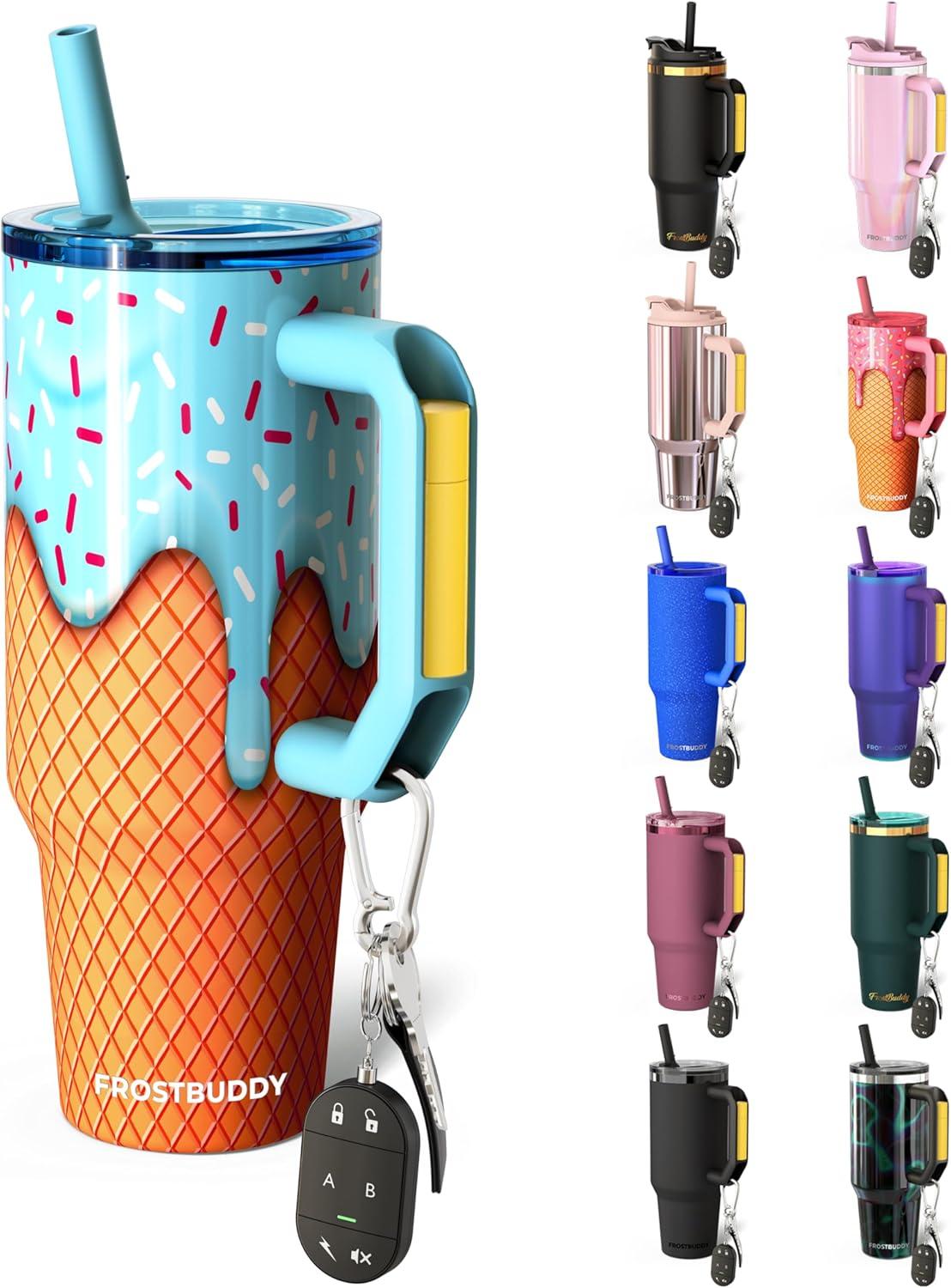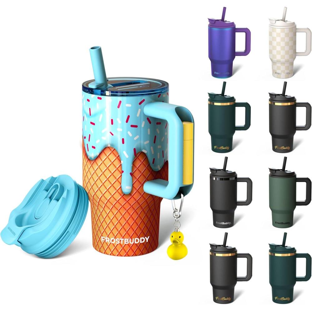 Thicc Buddy – 40 oz Stainless Steel Vacuum Insulated Tumbler with Lid and Straw for Water – Travel Mug Cupholder Friendly – Gifts for Women Men Him Her (Party Peeps)(Blue Ice Cream)