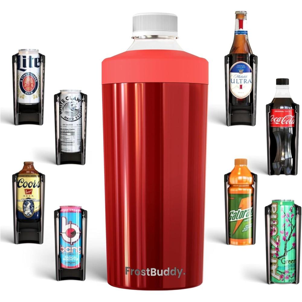 Universal Buddy XL Can Cooler by Frost Buddy - Fits 12-ounce, 16-ounce, 20-ounce, and 24-ounce Cans and Bottles - Keep Your Drinks Refreshingly Chilled for over 12 hours Emerald Elegance(Cherry delight)